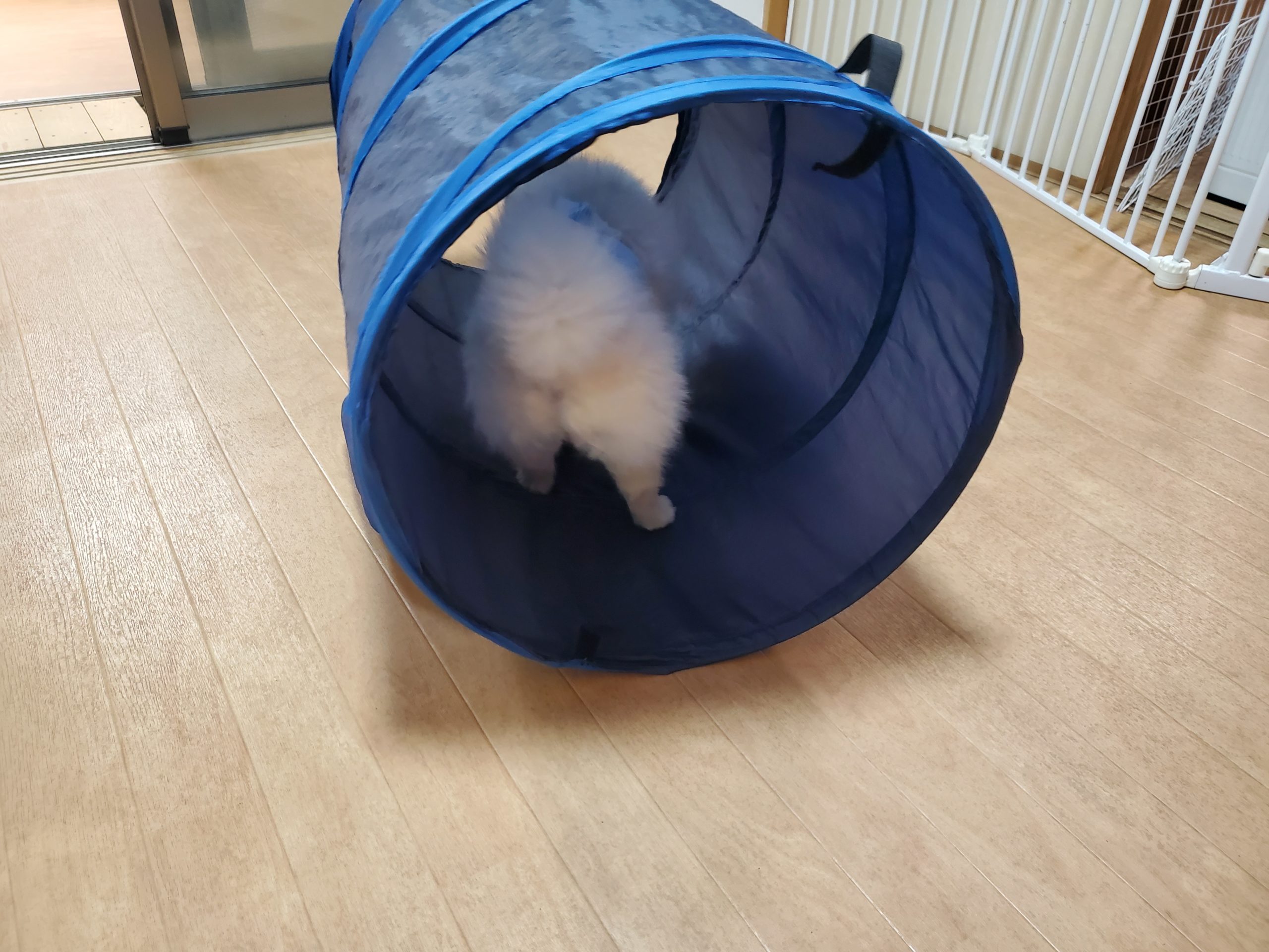 公園でお散歩デビューされたパピーに上手にご挨拶してくれたり、店舗内でも当日ご一緒したお仲間とも活発に遊んだり、もちろん大きさの違う、すみれやくうとも、何ともなく擦れ違っていました。