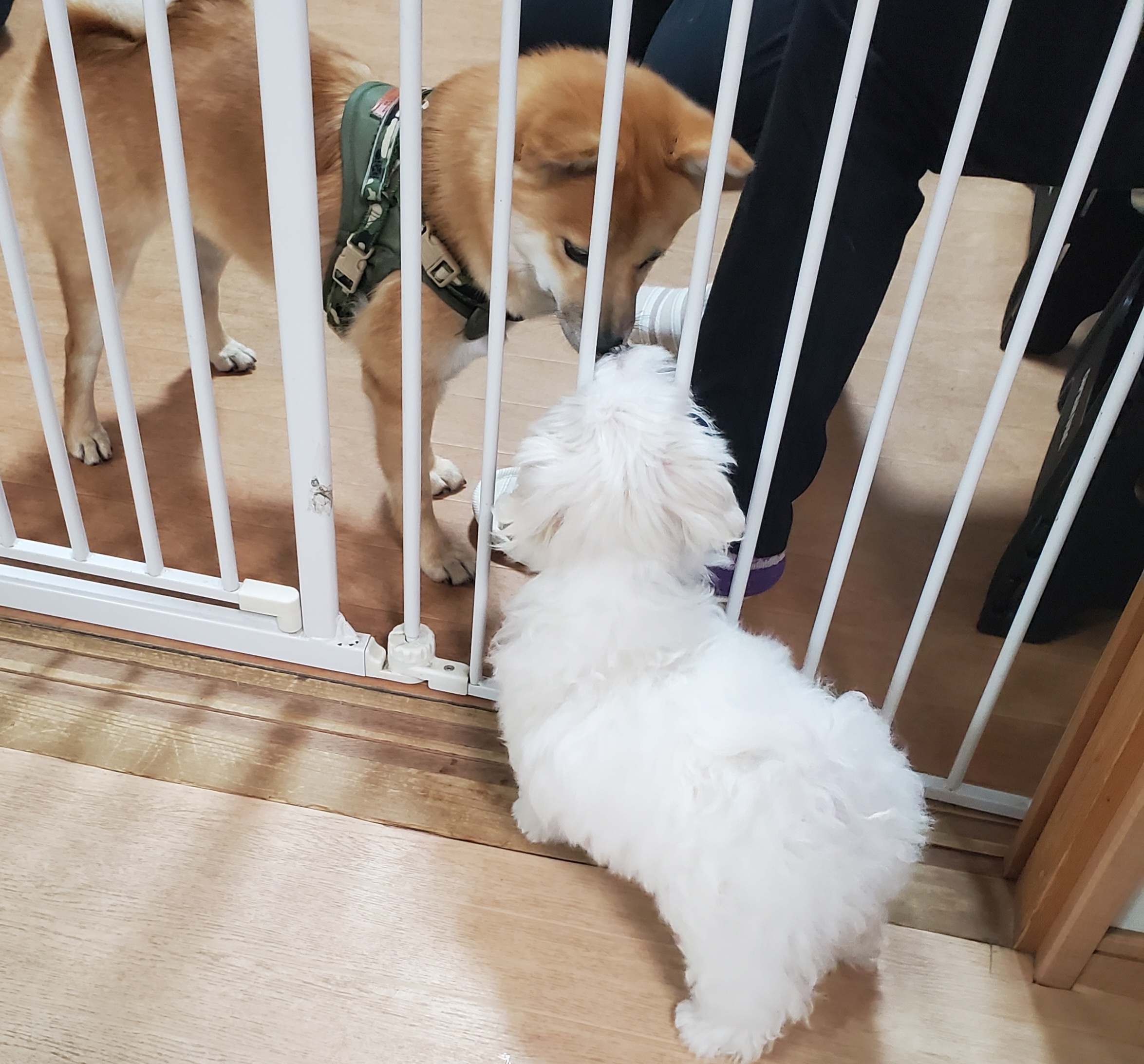 犬慣れで、ベガとフェンス越しに面会しましたが、上手に挨拶できています。