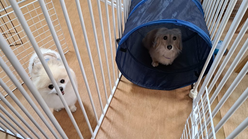 ダックスフンドのKちゃんと一緒に迷路もできました。