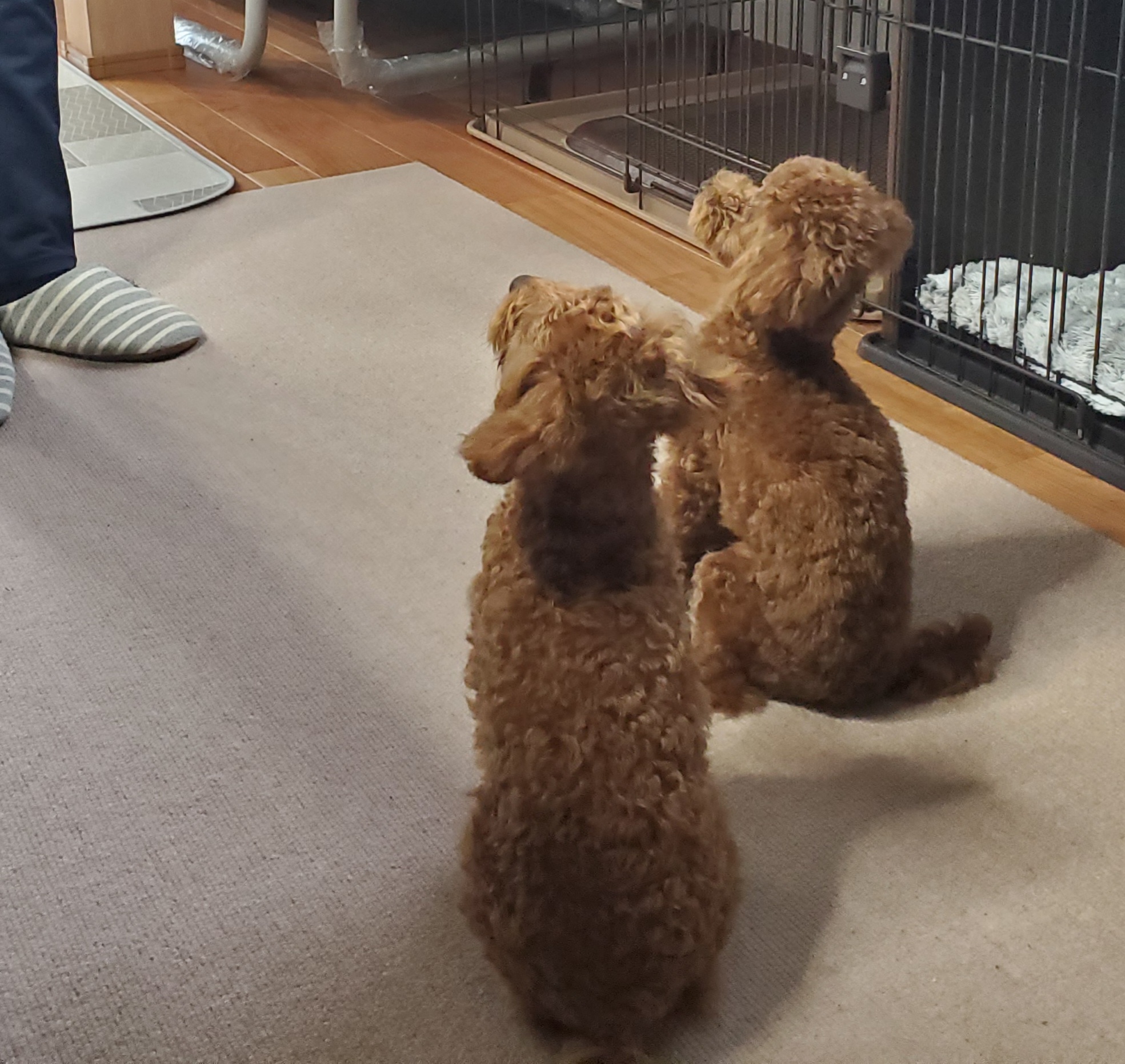 それぞれの思いがあって、なかなかお座りが出来なかった前回のレッスンですが、すんなり入っているハウスを利用して、1頭ずつ、集中してレッスンを行いました。