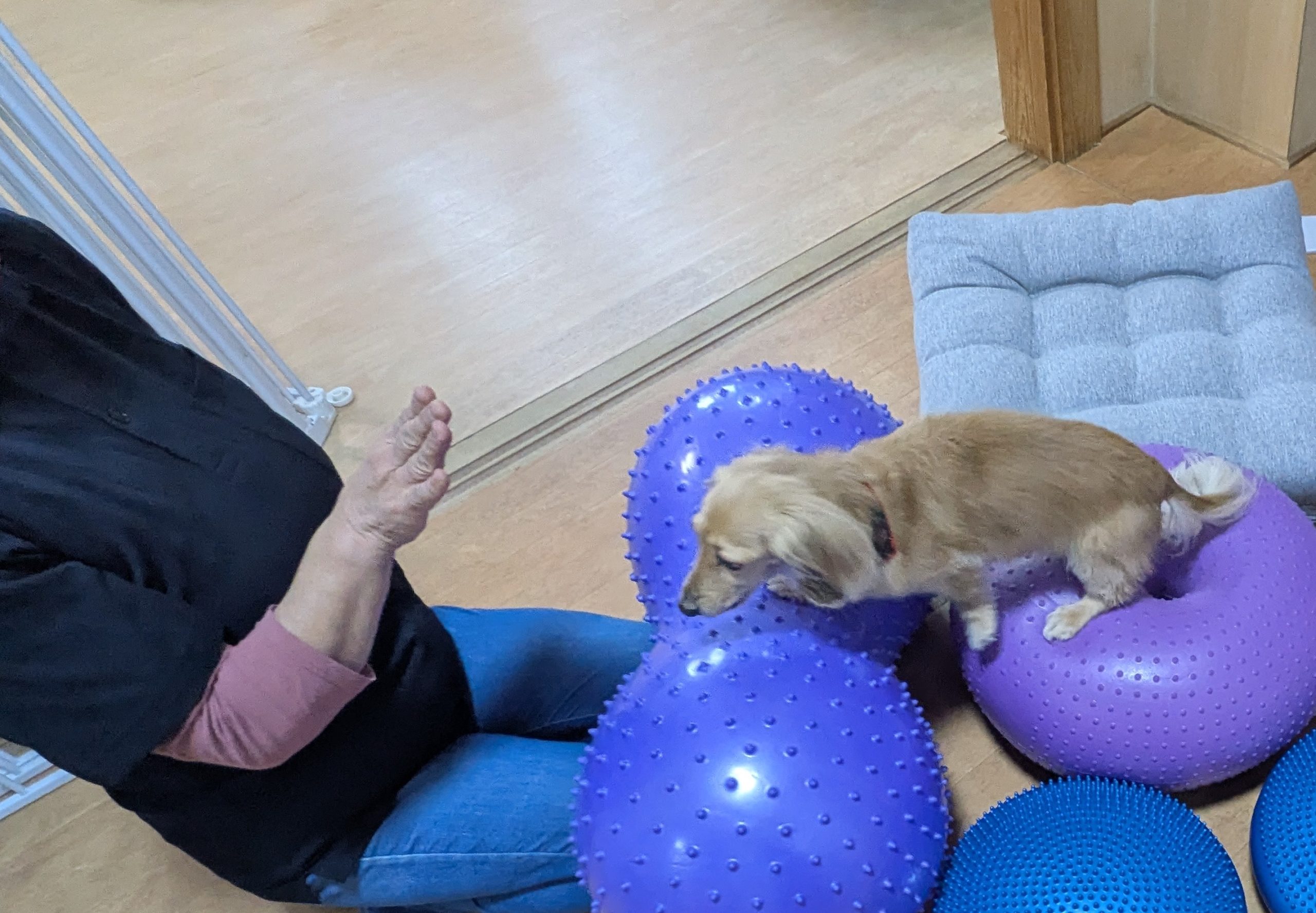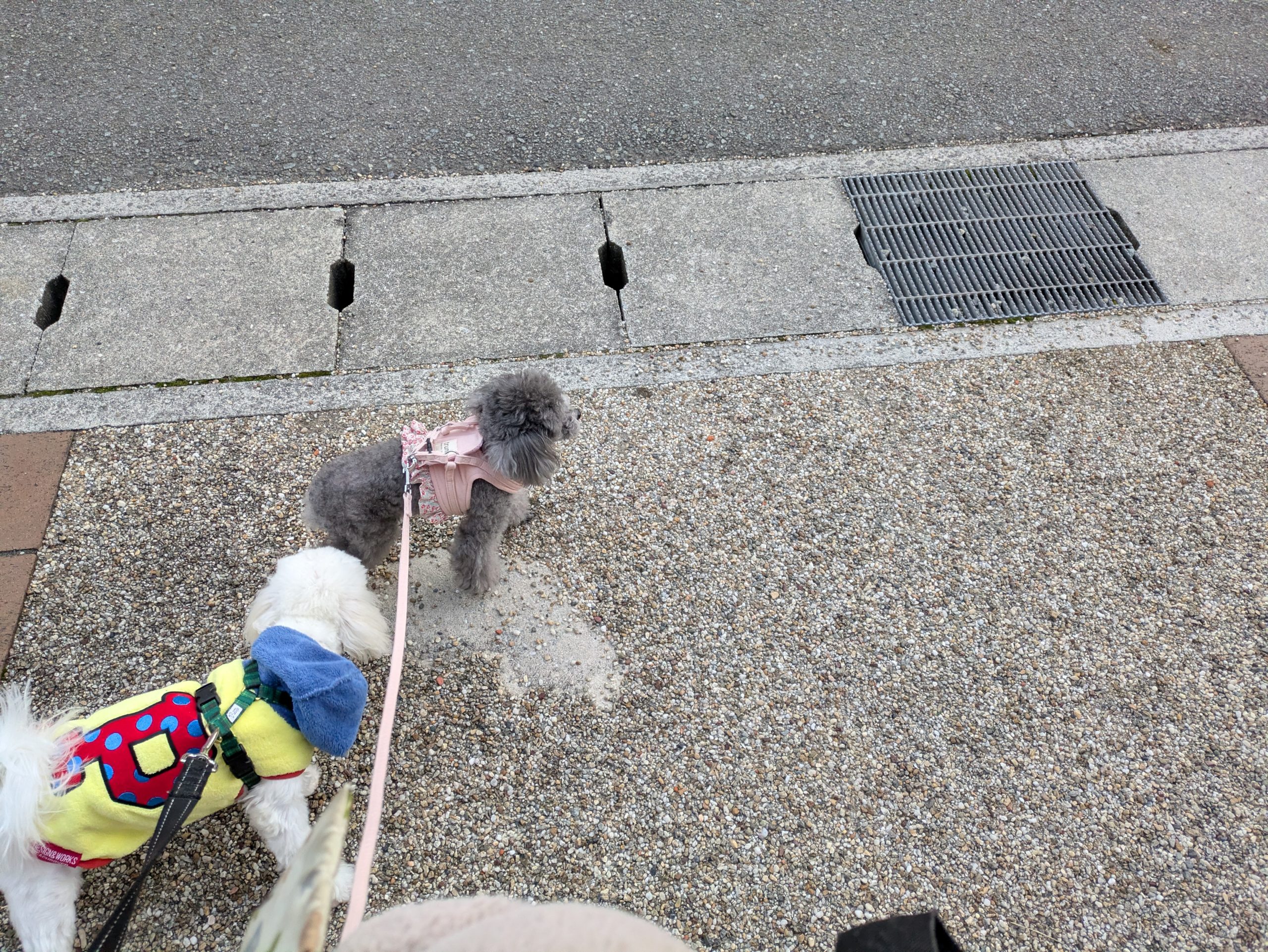 お散歩も無理せず行けるところを歩いてもらっています。みんなと一緒だと歩けたりします!