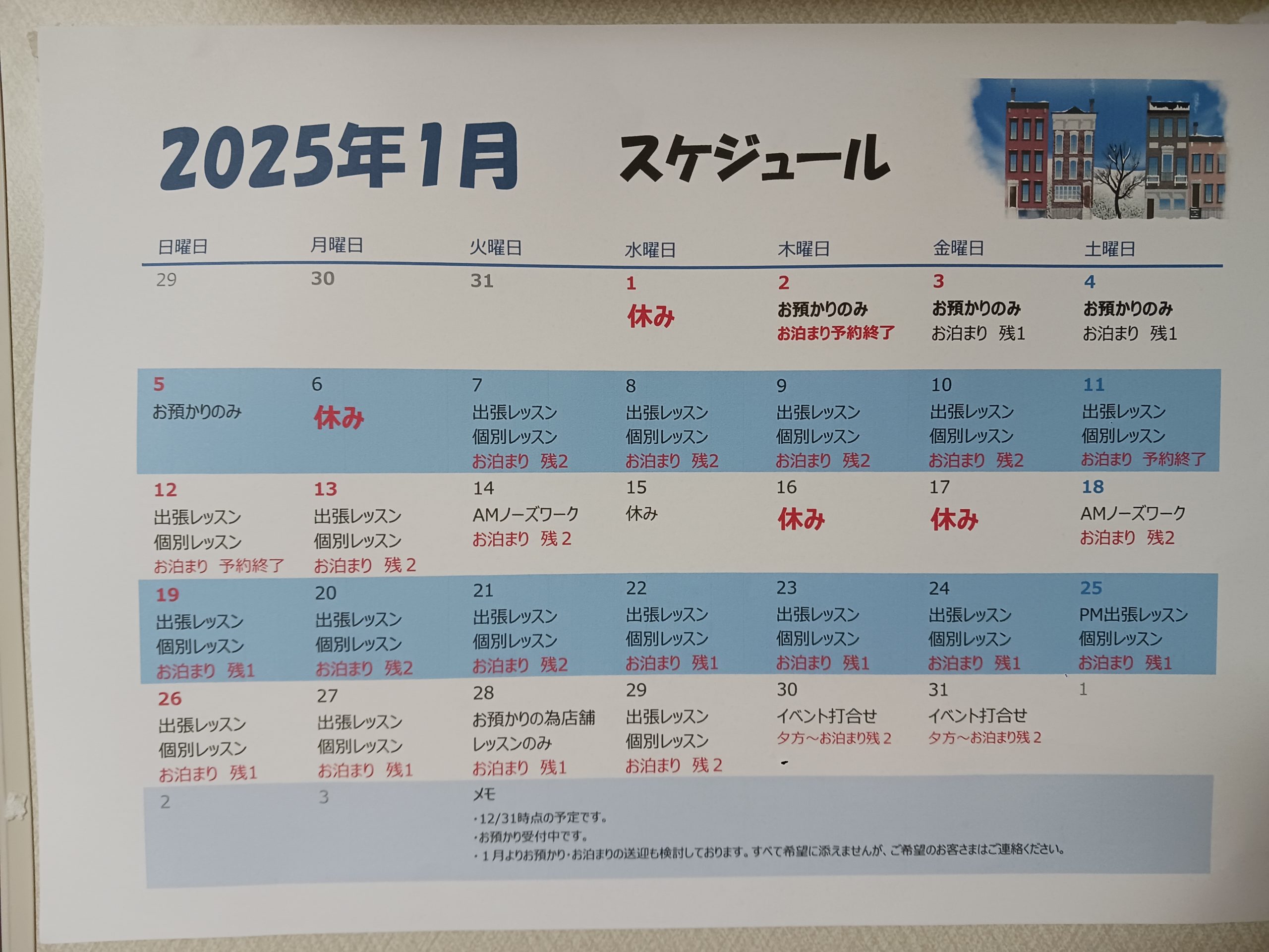あけましておめでとうございます。 昨年中は何かとお世話になりました。 本年もよろしくお願いします。 1月の予定です。